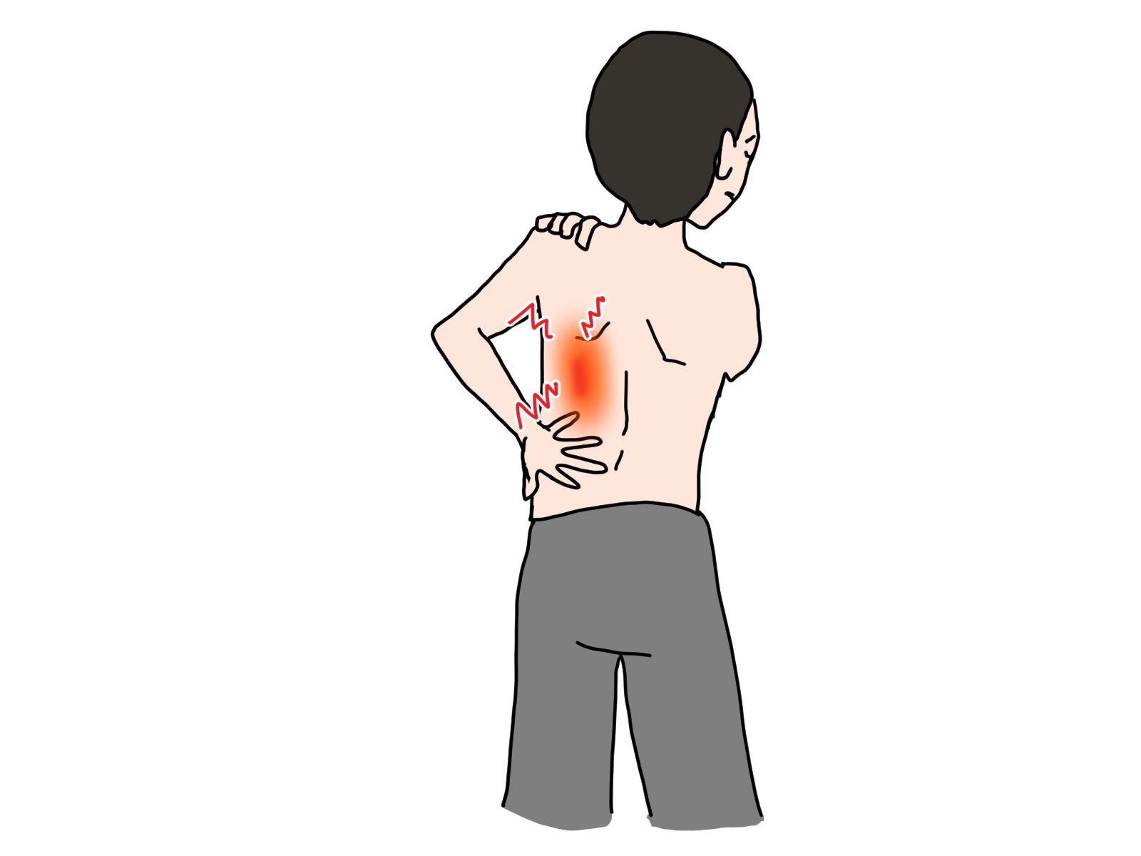 - 主訴: 慢性的な背中の張り・痛み(特に肩甲骨の間)、夕方の痛みの増強。深呼吸をすると痛むことがある。