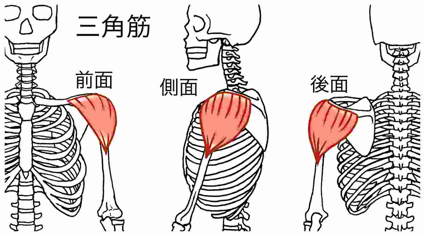 この3つのイラストは肩関節を構成する骨と筋肉のイラストです。