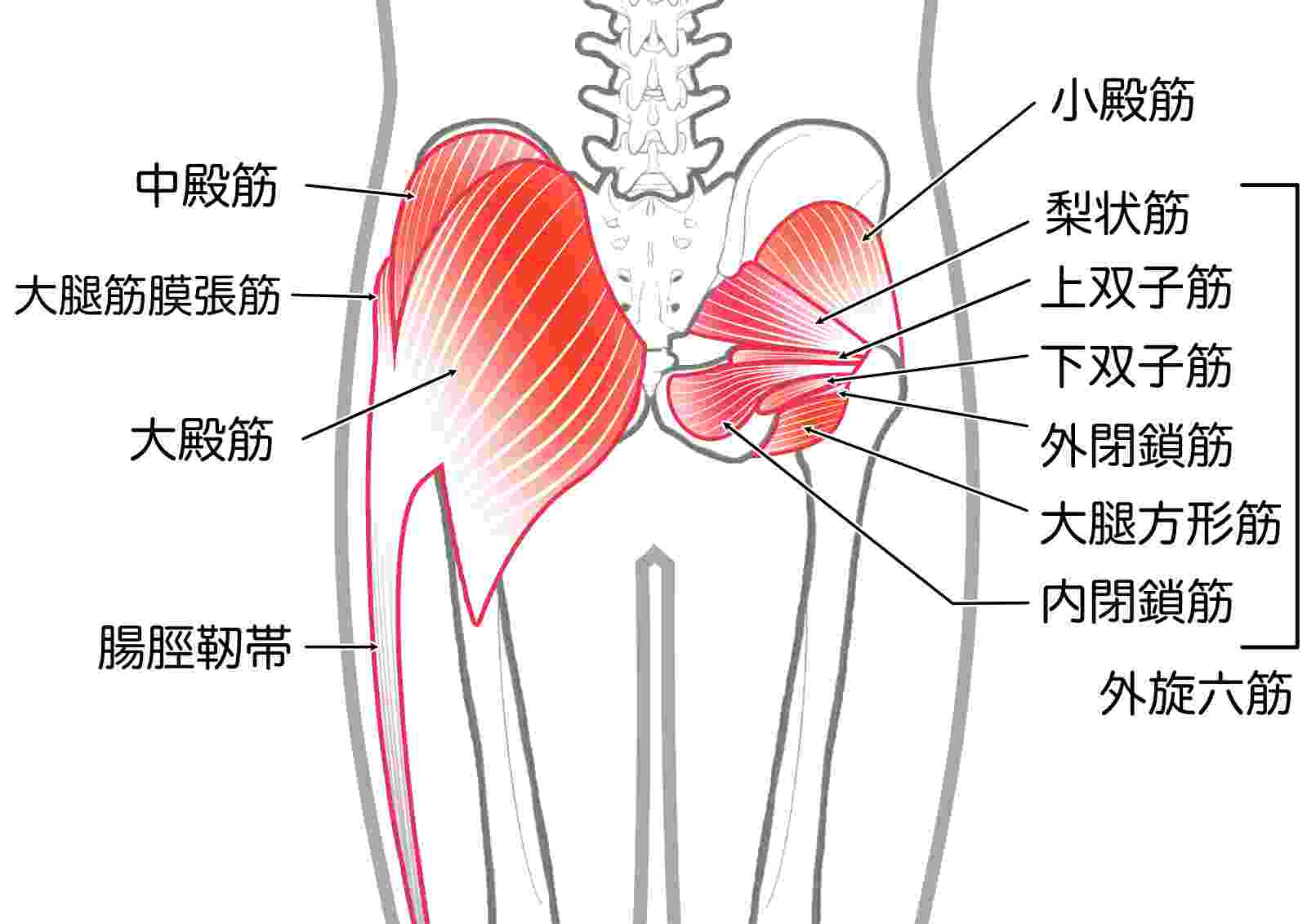 これがお尻の筋肉である中殿筋とその他の筋肉です。