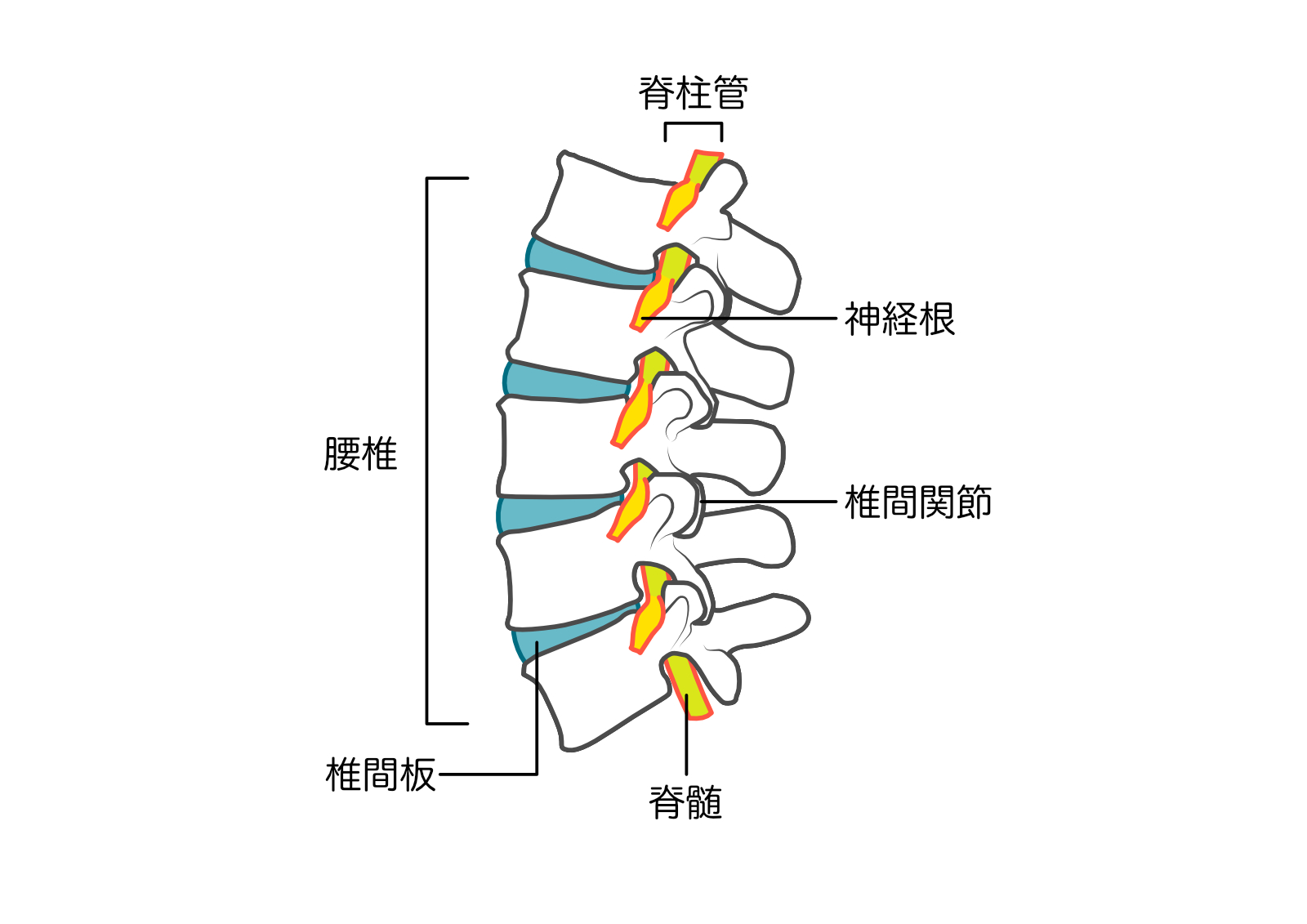 脊柱管 | 椎骨が連なってできるトンネル状の空間。 | 脳から続く脊髄や、そこから枝分かれした神経(馬尾神経など)を保護する。 |