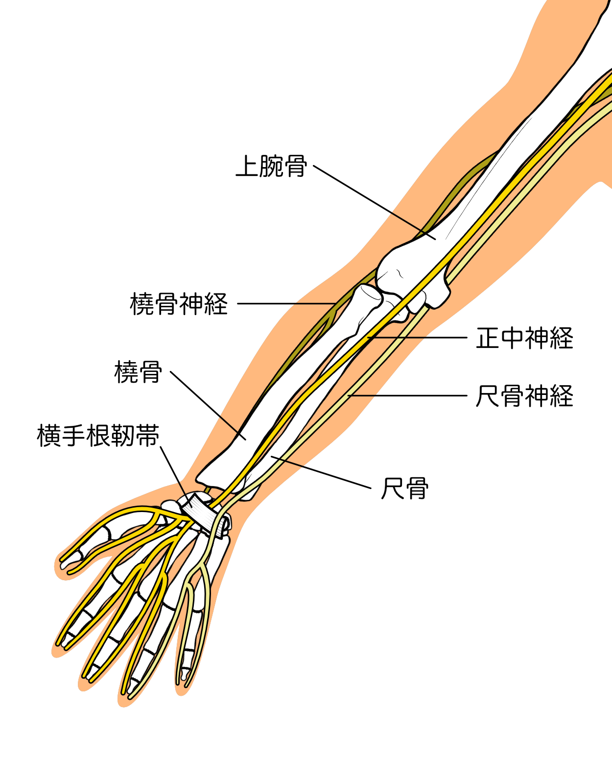 まず腕の神経のイラスト☟